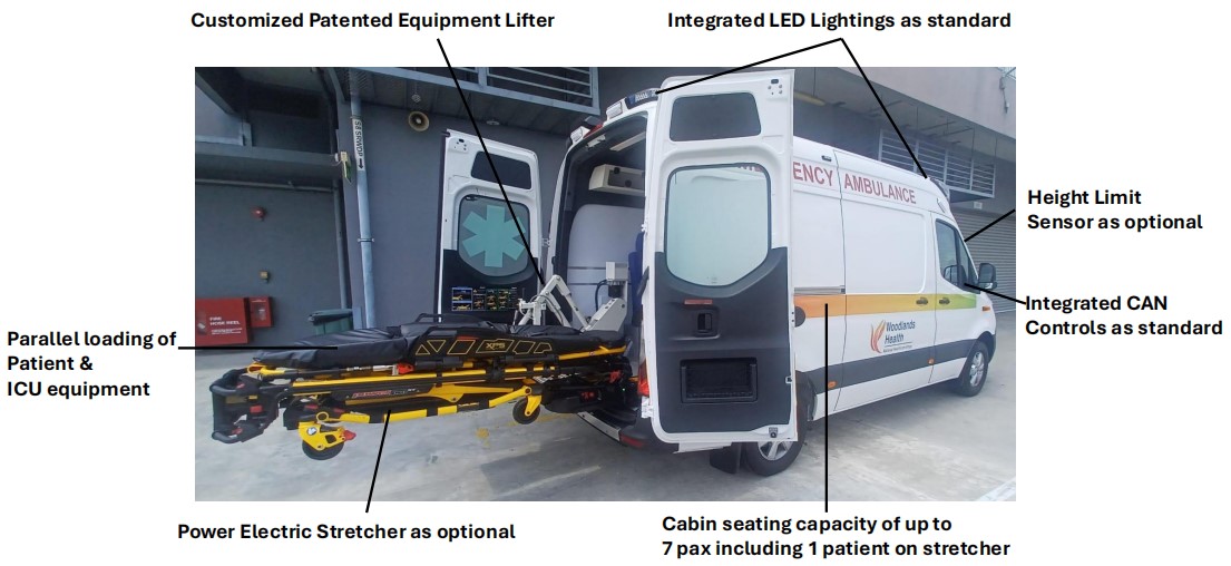 Designed specifically to optimize the interior working cabin space, the ICU transfer Ambulance’s primary objective is to enable medical teams to load both ICU patients and equipment efficiently onboard without compromising safety standards